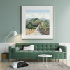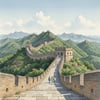On a bright, sunny day, the Great Wall of China stretches endlessly across the rugged mountain landscape, its ancient stones glowing under the clear blue sky. The photo captures a lively scene as people walk along the elevated pathway, often referred to as the "bridge", pausing to admire the panoramic views. The wall snakes along the ridgelines, serving as a historic border between regions, its watchtowers dotting the horizon like silent sentinels. Majestic mountains rise on either side, framing the wall in natural grandeur and reminding viewers of the immense scale and enduring legacy of this architectural marvel.