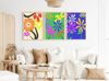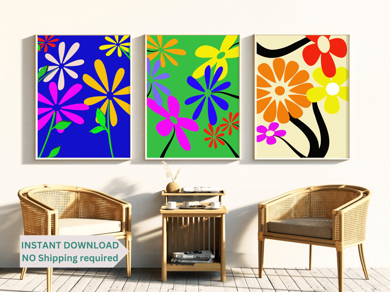 Colorful Daisy Flower Market Abstract Wall Art Prints, Set of 3