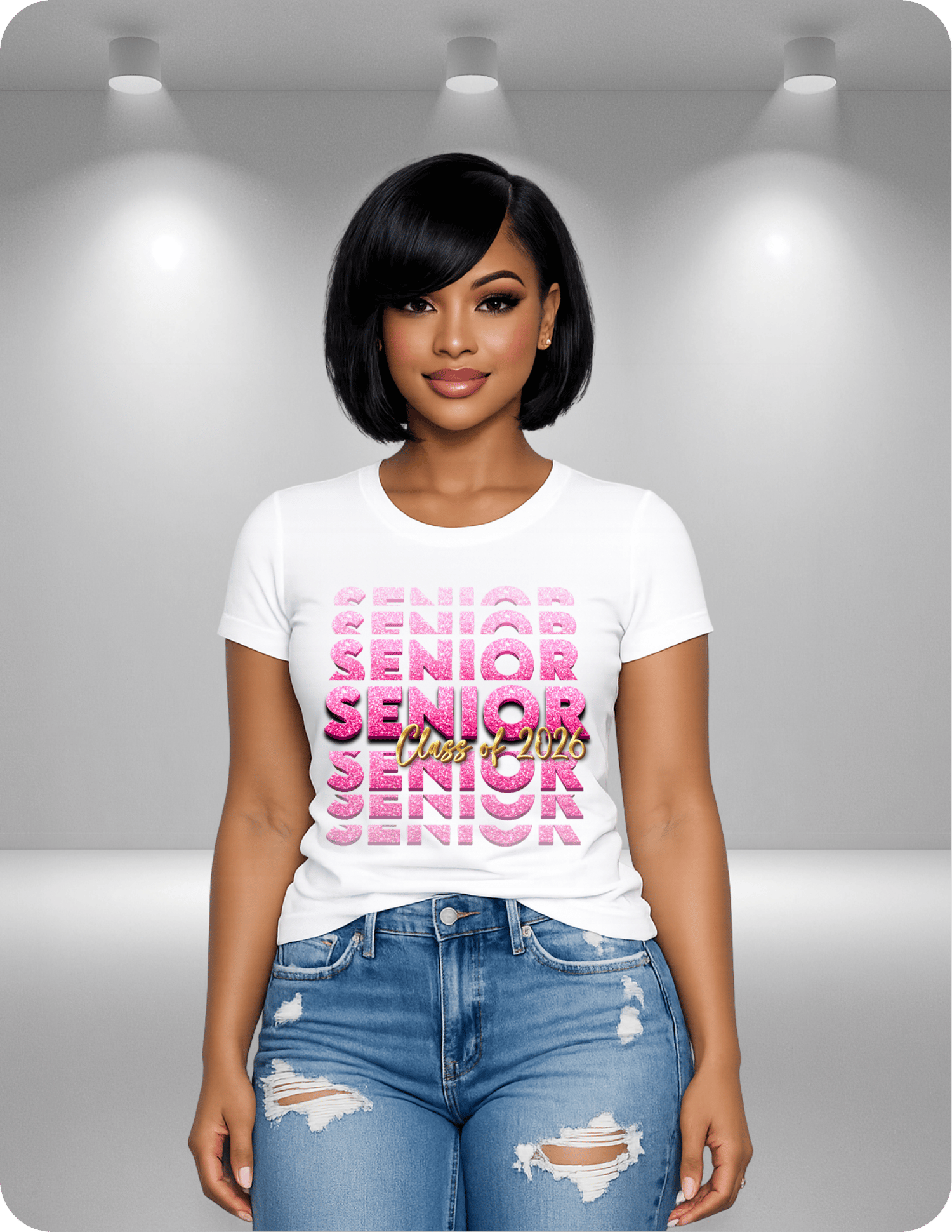 Bold repeating “SENIOR” background for a trendy look