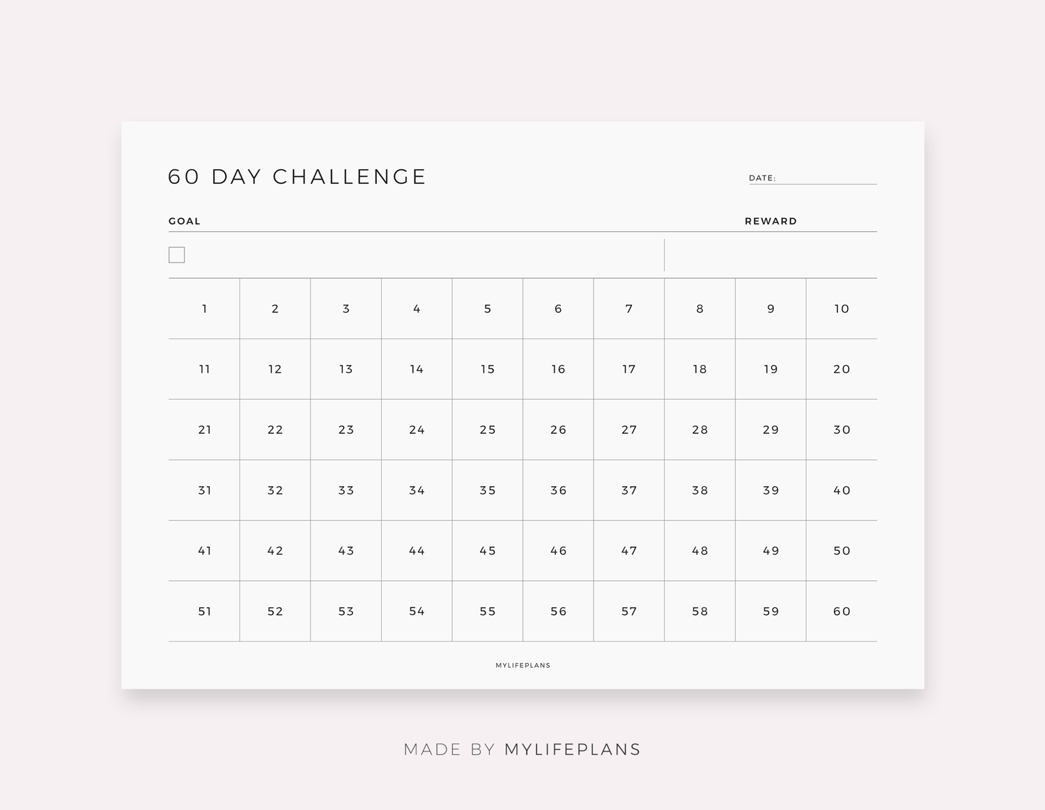 60 Day Challenge Planner, Landscape, Compatible with Remarkable, Supernote, Kindle, Boox, Kobo