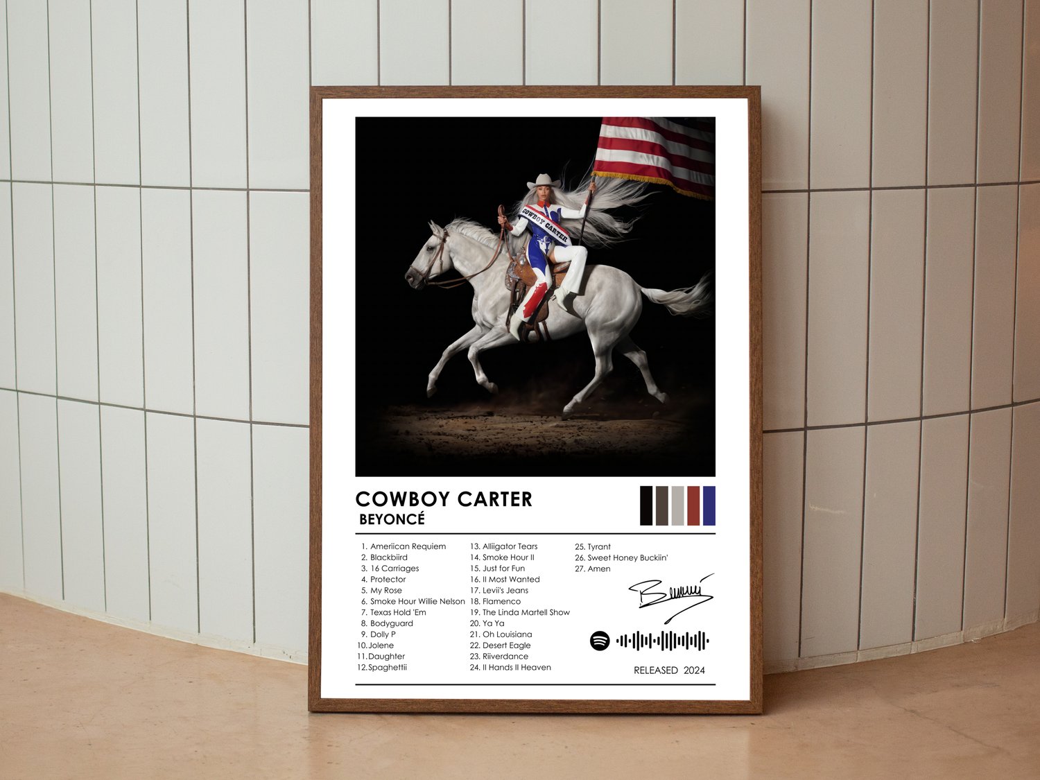 Bring the bold and groundbreaking style of Beyoncé into your space with this COWBOY CARTER album cover poster.