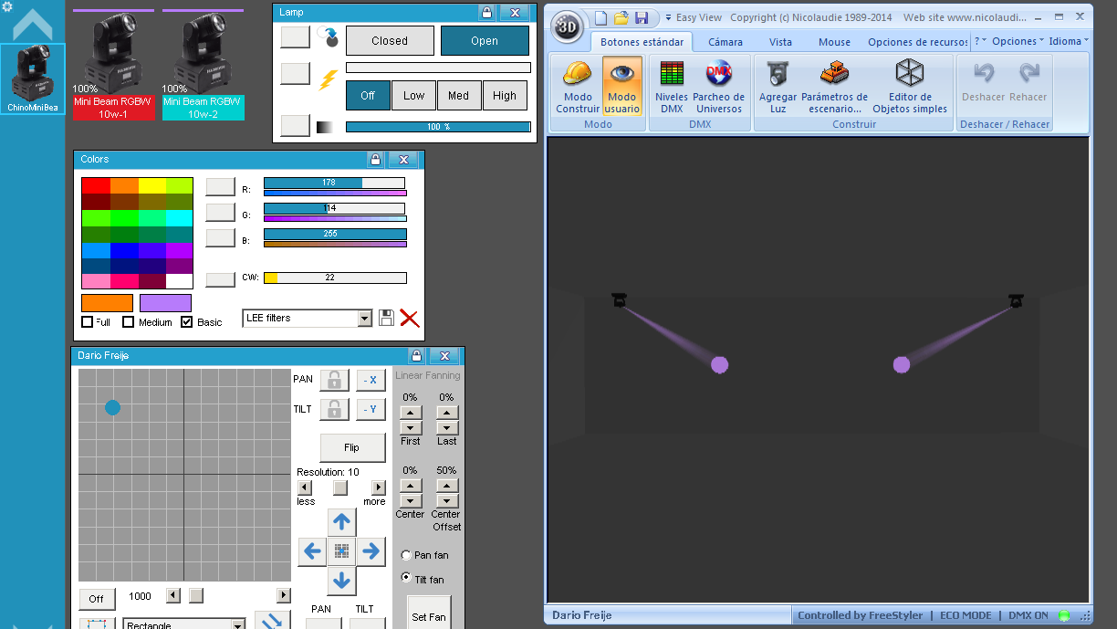 Esta Librería SSL2 está optimizada para trabajar con Magic 3d Easy View. Es decir para ver una representación 3D de las secuencias que estemos realizando con Freestyler, QLC+ o cualquier otro soft que se conecte con Magic 3d.