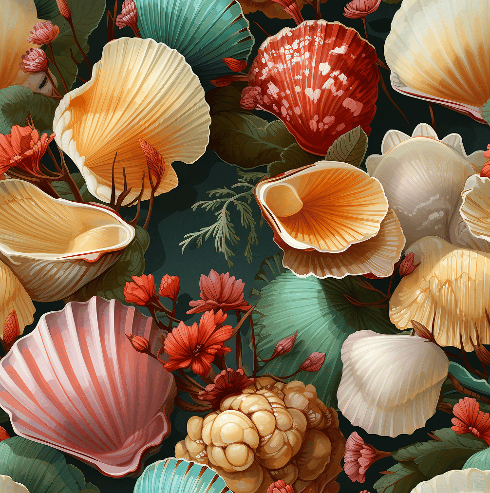 Seashells and starfish digital art collection for your next project! Contact us if you need larger file sizes.