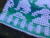 You will need approximately 50 g of yarn in two colours of DK (or equivalent) yarn, and a 5 mm double-ended Tunisian crochet hook.