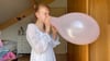 Oxana is back with a bigger balloon. This one made such a loud pop!