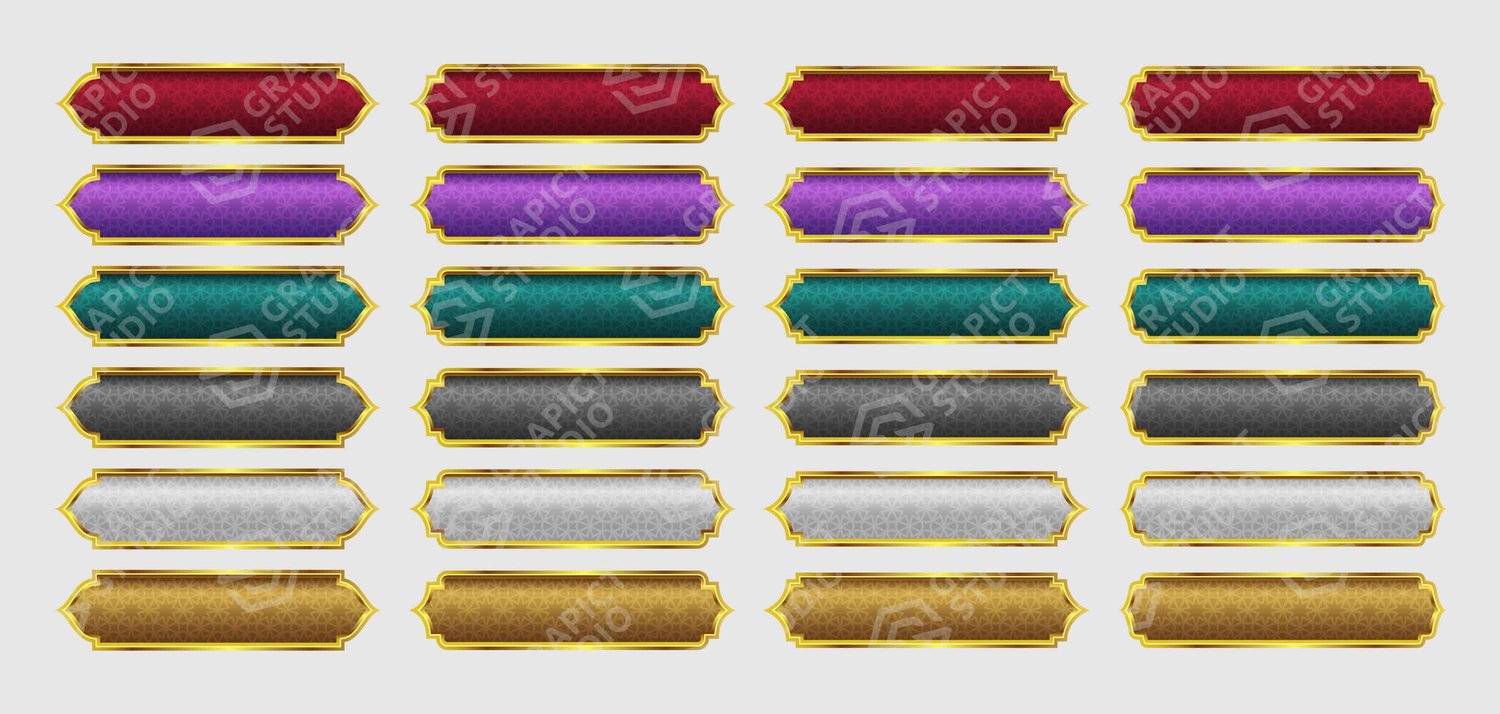 Elegant golden Arabic frame border banner set with optional color scheme. 4 frame styles and 6 color variation. Suitable for design element of card, banner, social media post or ads.
