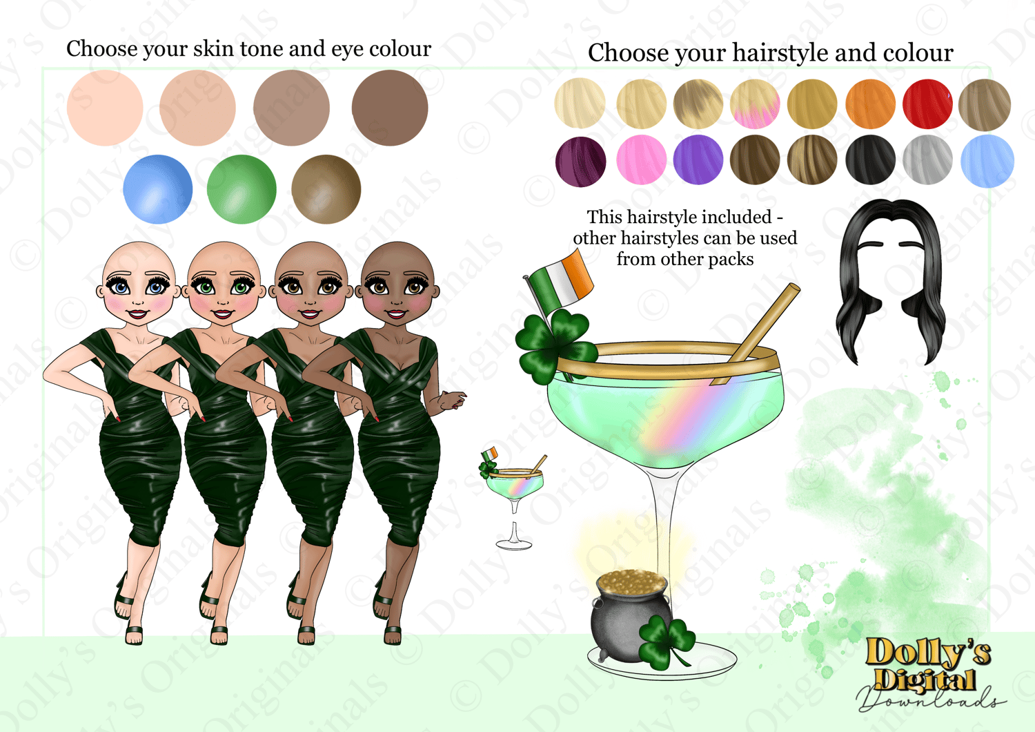 Instant digital download of our St Paddy’s Day Cocktail Dolly Character Bundle PNG (66 PNG’s)