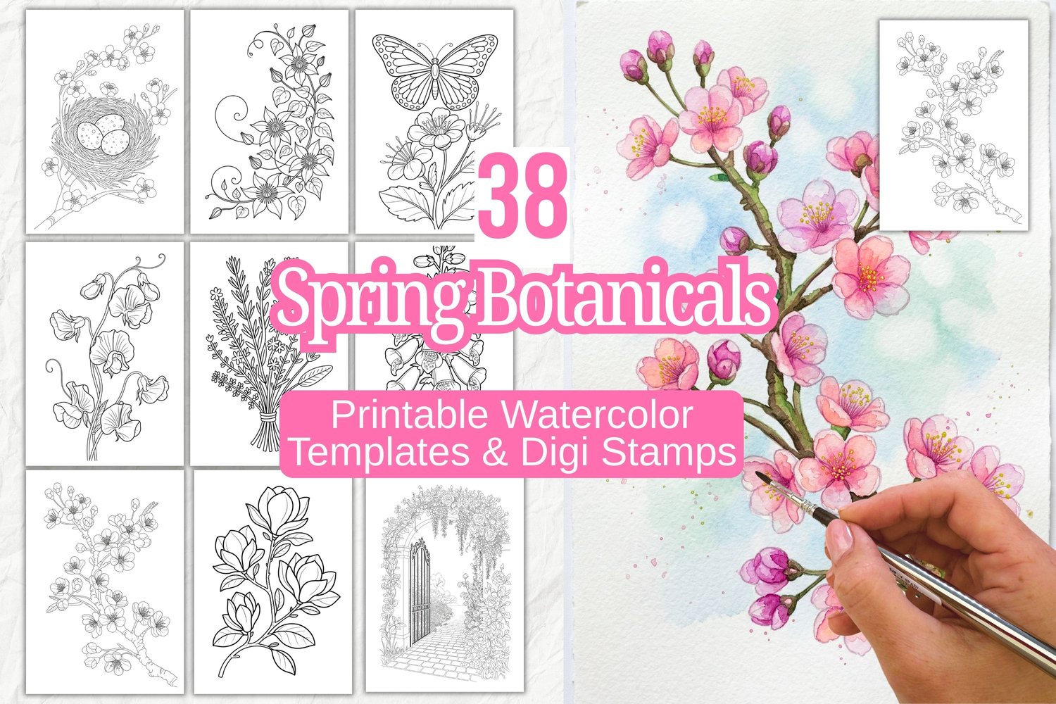 π¨ 32 Christmas Watercolor Outlines β Printable Templates & Digi Stamps