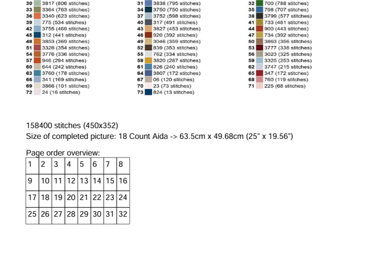 Instant Digital Download: PDF included. A copy of the pattern in black and white and a colour chart is also included.