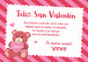 Tarjeta de san valentin con temática de oso con corazones. En la parte trasera cuenta con un espacio para un mensaje personalizado.