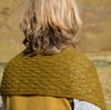 The Lovespoon Shawl is a rectangular shawl worked lengthways, starting with a cable-rib border, followed by a cable-lace pattern, and finished by a cable-rib border again. Two options are provided for working the side edges of the shawl, in either garter stitch or I-cord.