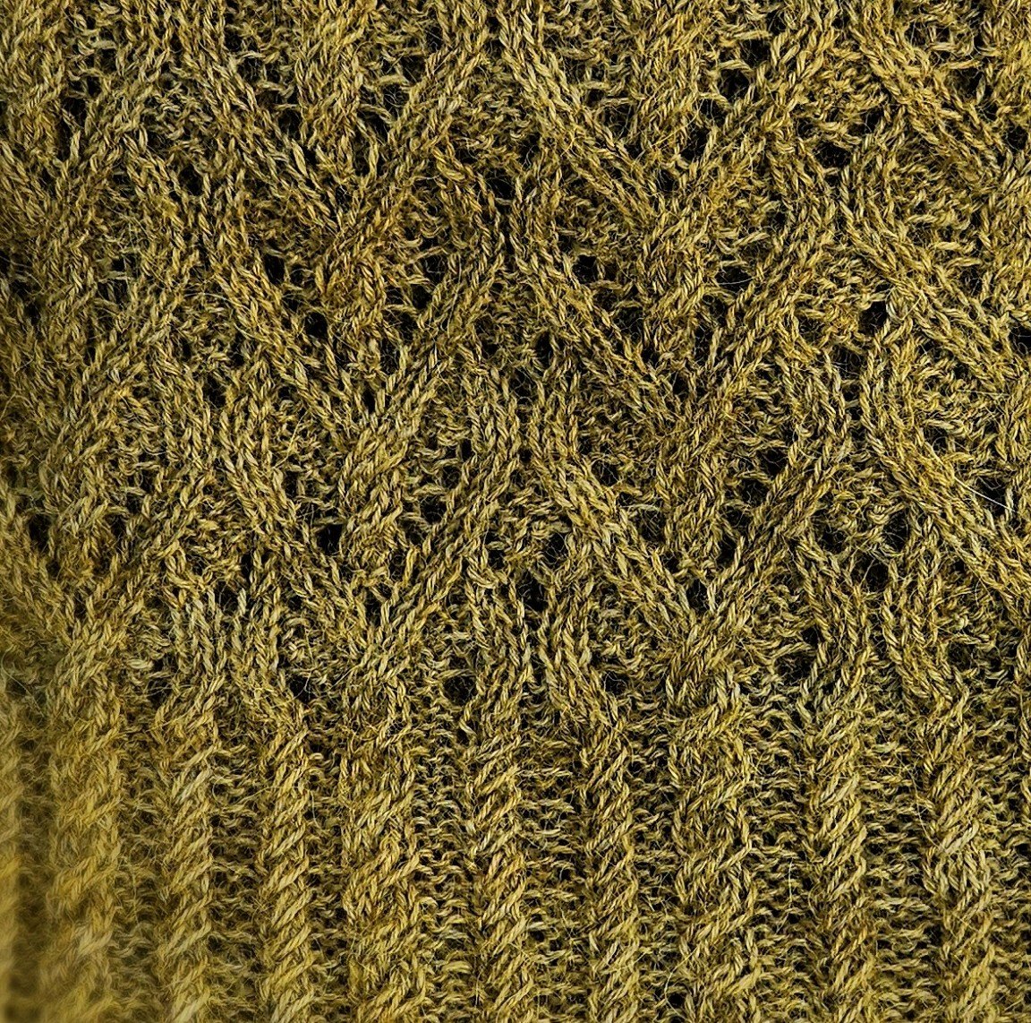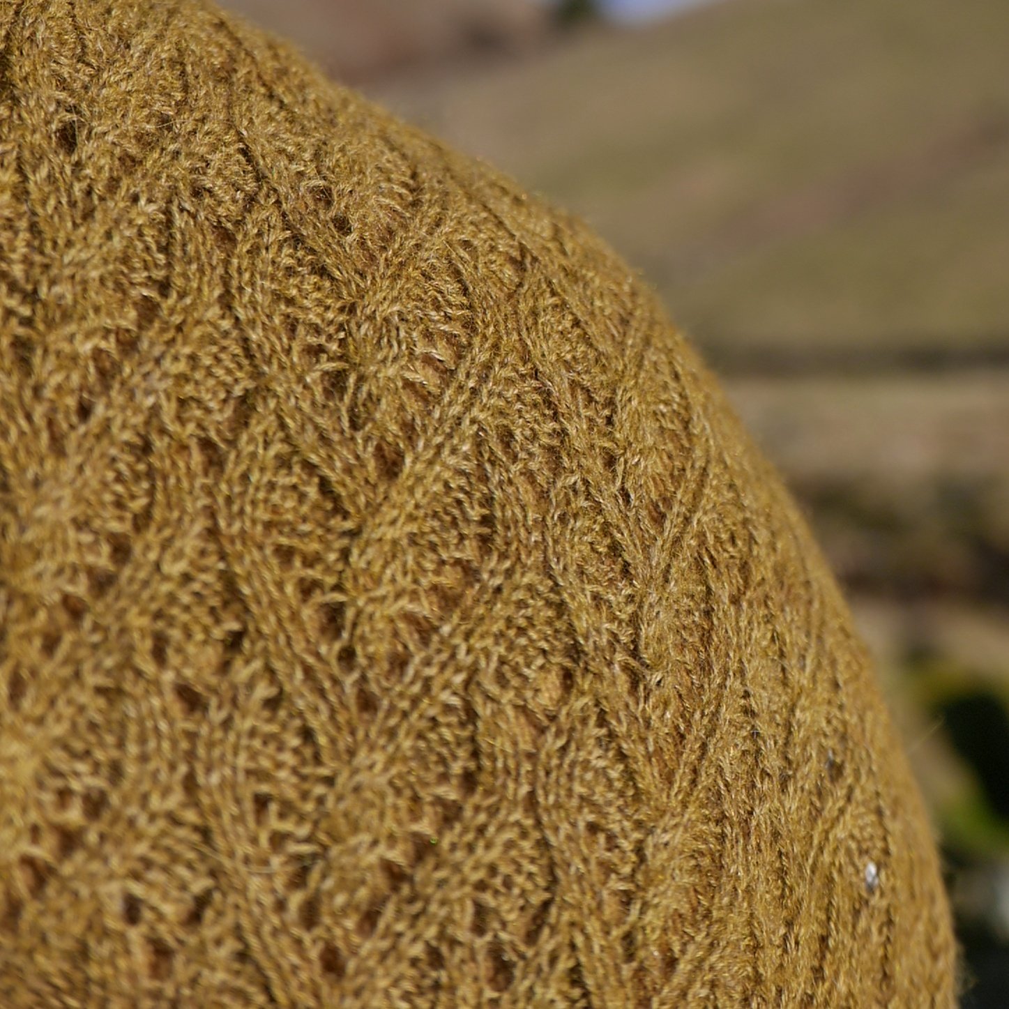 The Lovespoon Shawl is inspired by the beauty of the Welsh love spoons – delicate flowing lines and interwoven motifs that mirror the fine carved details of the love spoons themselves. The heart-formed lacework reflects the tender symbols of love and connection, while the cables echo the strength and commitment found in these ancient carvings.
