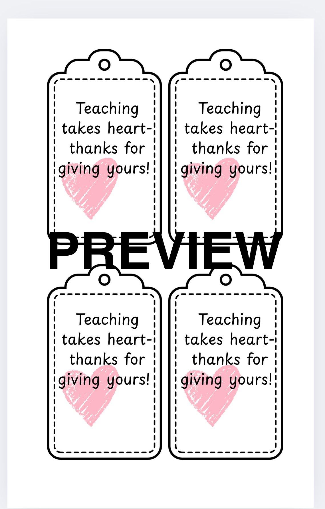Show teachers or teacher assistants how appreciated they are with these printable gift tags. This set includes multiple tag designs with fun, heartfelt sayings that are easy to print, cut and attach to gifts.