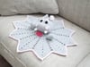 SIZE: The blanket diameter is 20 1⁄2” (52 cm) after blocking.