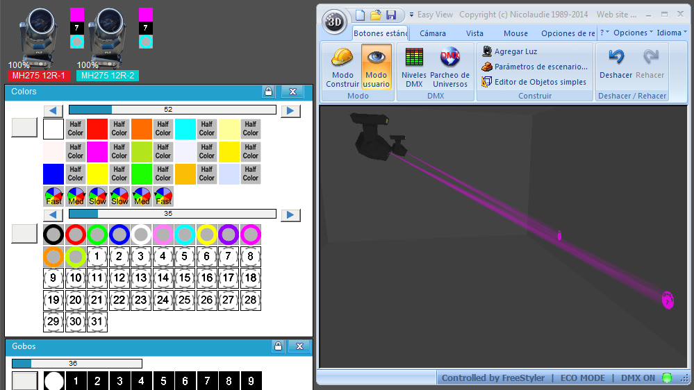Esta Librería SSL2 está optimizada para trabajar con Magic 3d Easy View. Es decir para ver una representación 3D de las secuencias que estemos realizando con Freestyler, QLC+ o cualquier otro soft que se conecte con Magic 3d.