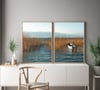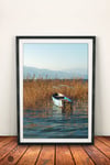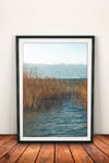 Nature Minimalist Lakescape Photography,Coastal Reeds Prints,Set of 2 Ohrid Lake Print,Fall Color,Lonely Boat,Blue sky,Mountain,Printable Wall Decor,Digital download,Large Print,24 x 36 inches,60 x 90cm.