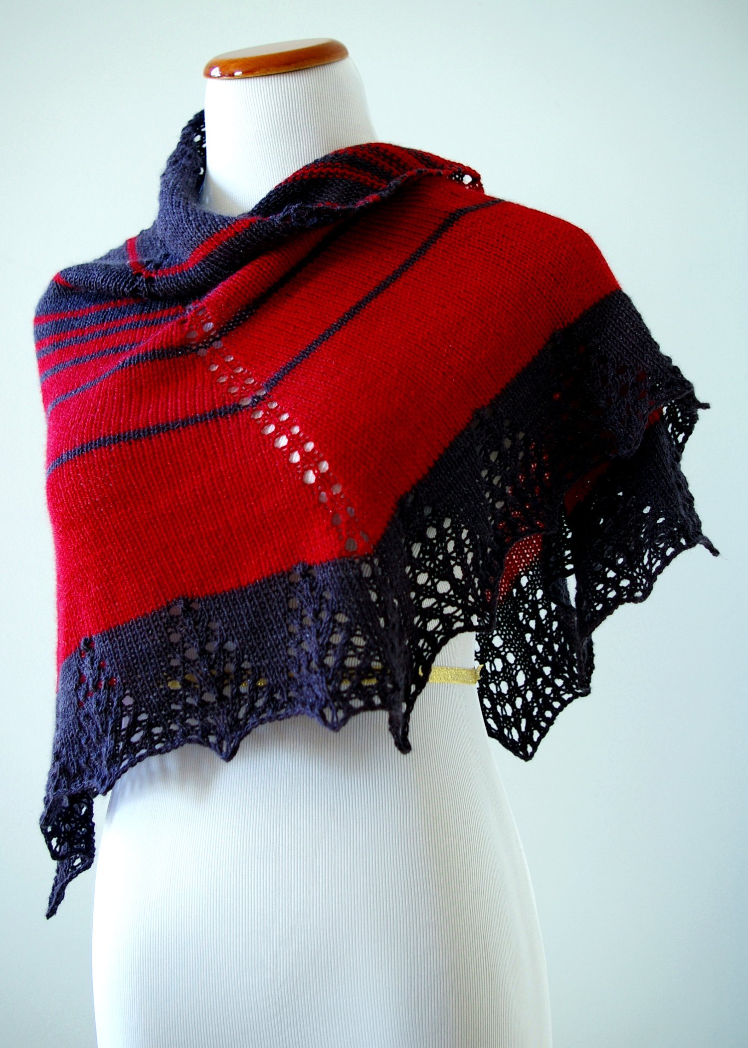 The winter Leonid meteor shower is best experienced in the early morning hours, when they streak in from the east over a lightening sky. Worked in two colors of the wonderfully sparkly Platinum by Baah Yarns, this shawl evokes the starry sky striped with the streaks of dawn and tails of shooting stars, and could be just the thing to wrap around your shoulders for a bit of meteoric drama of your own this winter.