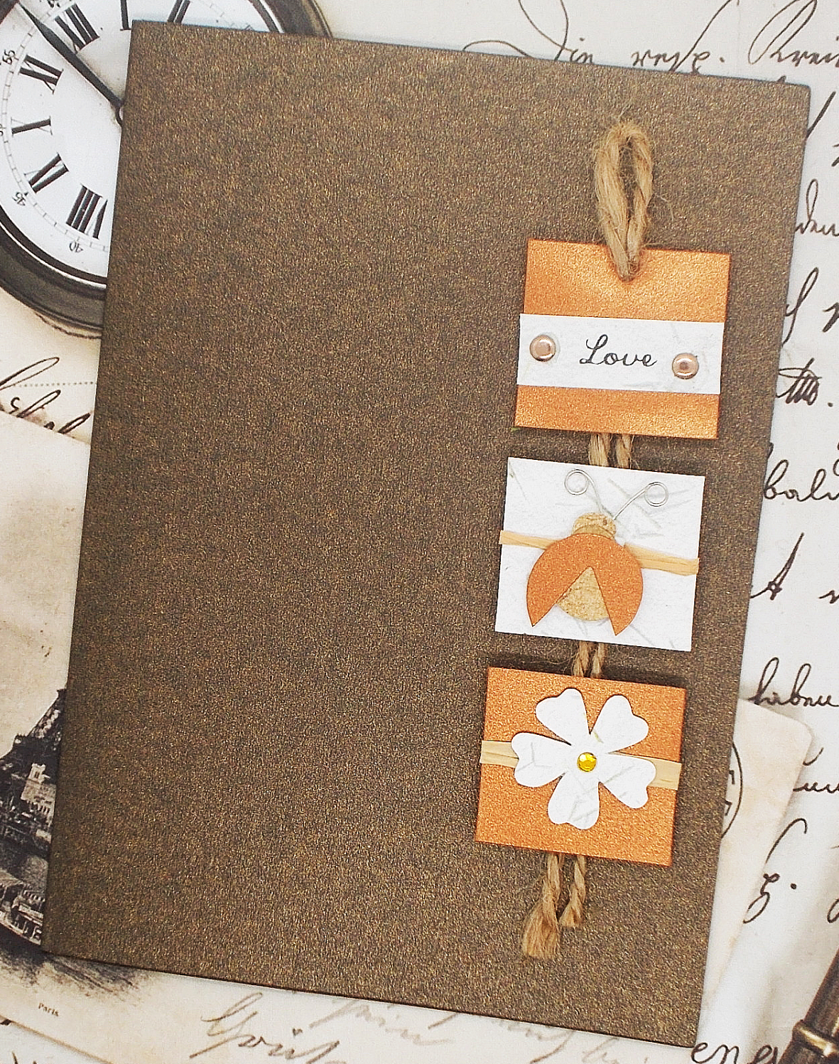 Feito à mão com papéis especiais de alta qualidade e diversas gramagens, sisal e metal