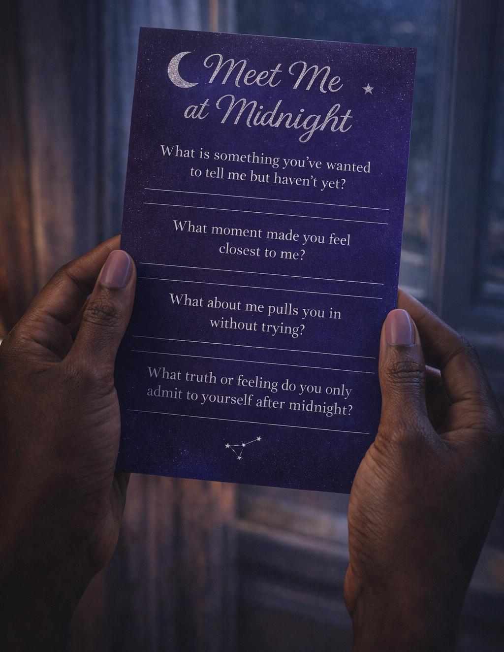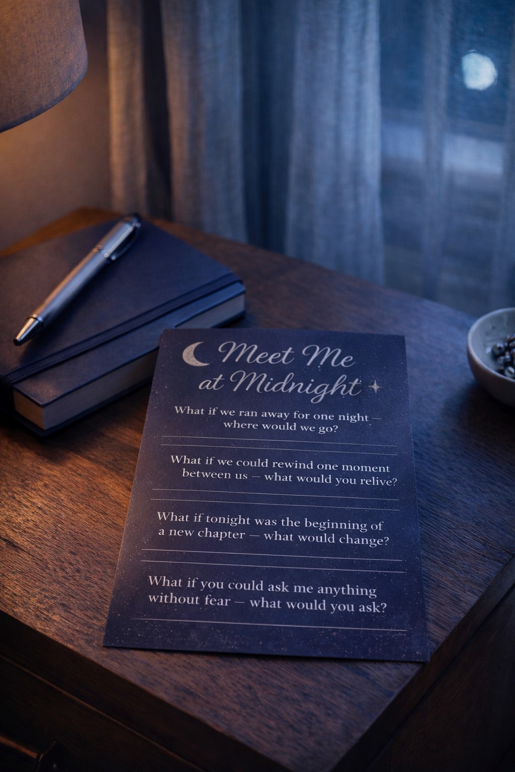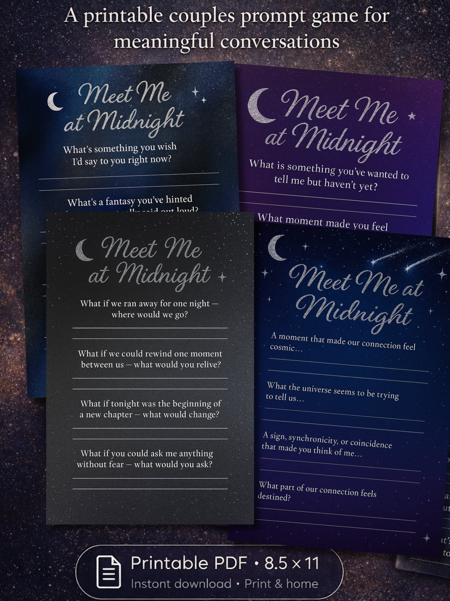Meet Me at Midnight, is a printable couples conversation game designed for quiet nights, honest talks, and moments that bring you closer.