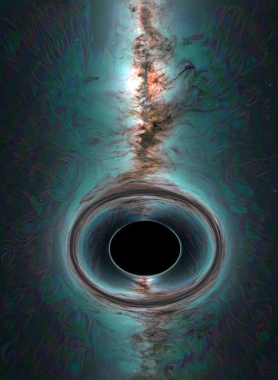 This Art piece is meant to provide a representation of a black hole’s event horizon. To capture your goal and give it power and energy to manifest into reality.