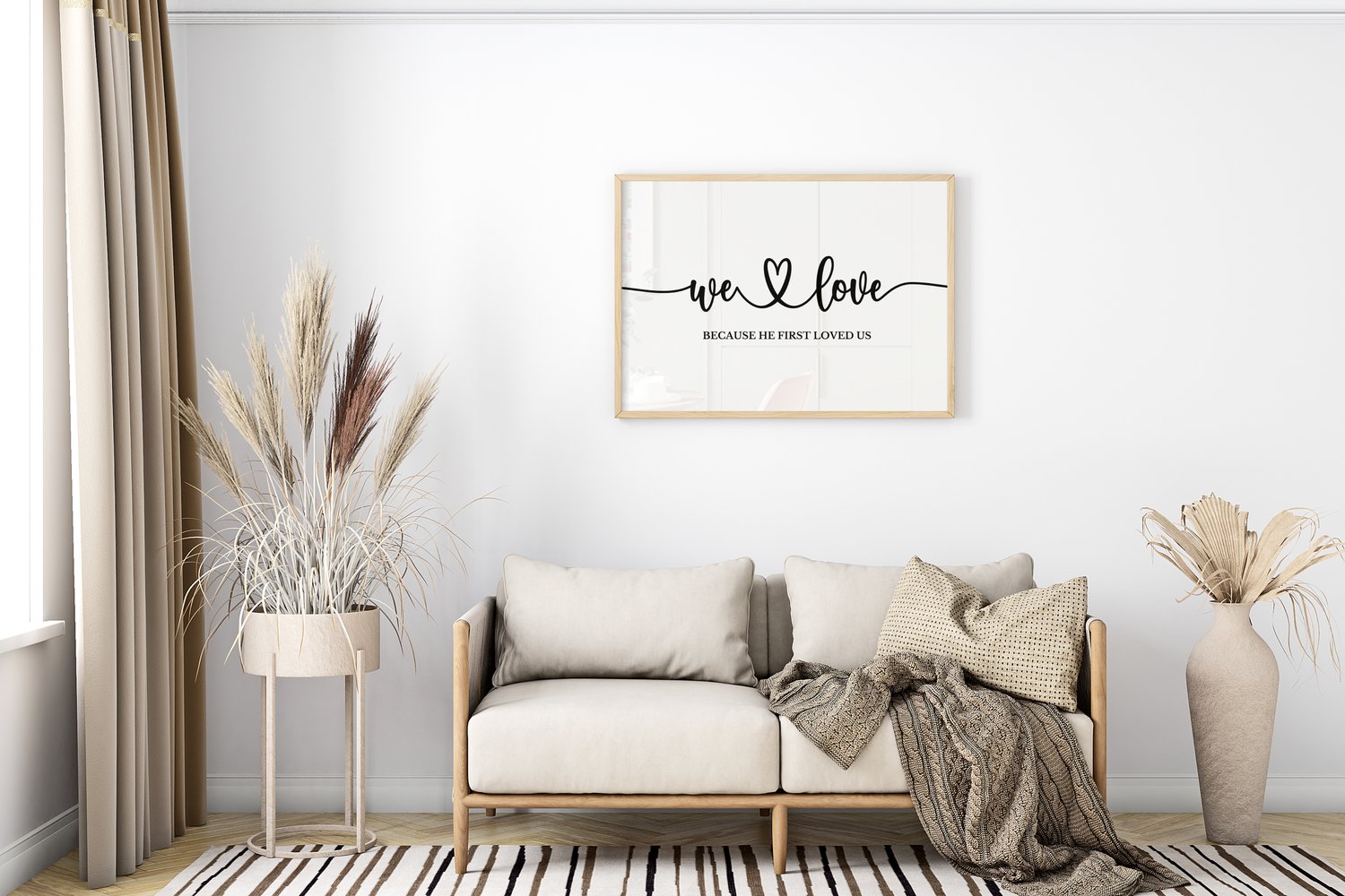1 John 4:19 We Love Because He First Loved Us | Horizontal Printable Wall Art Decor Minimalist Christian Bible Verse Poster
