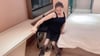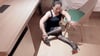 On a quiet night, Susie is in the hotel wearing a black suspender dress.