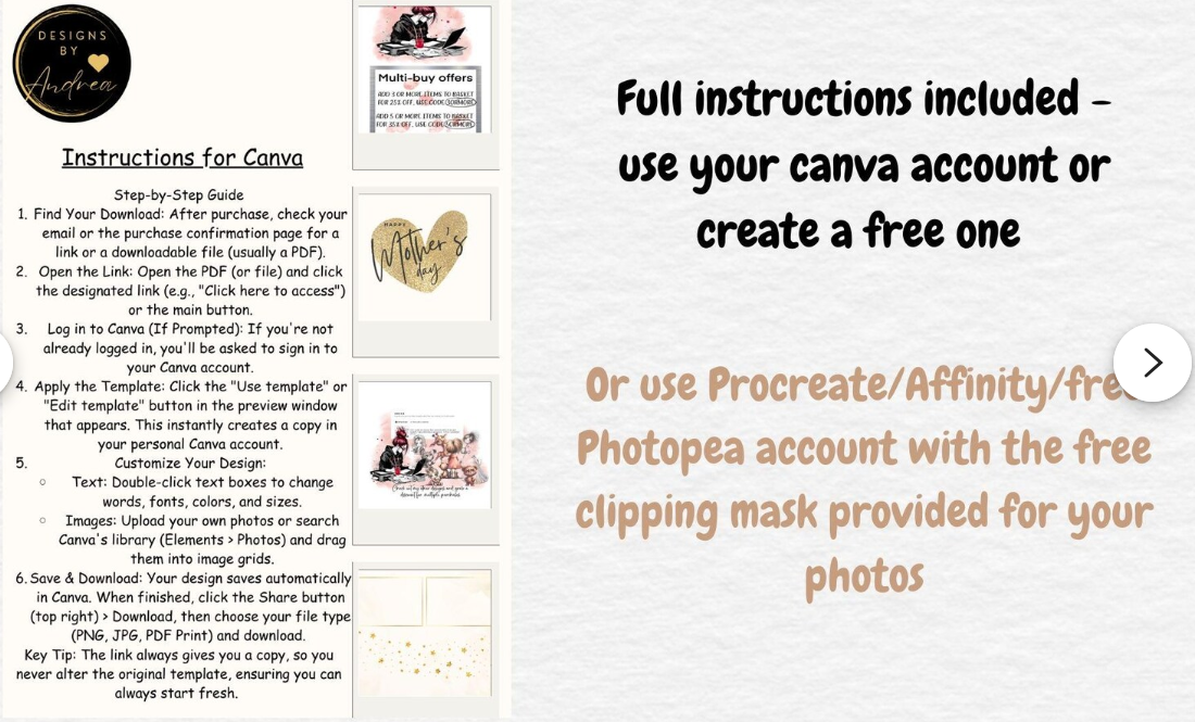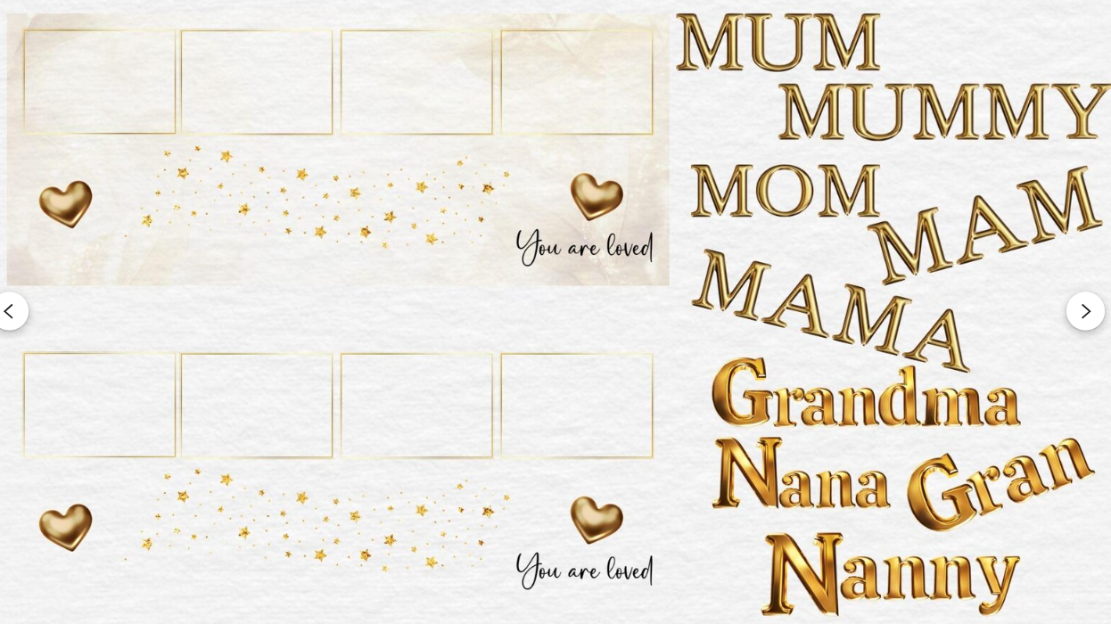 Perfect for Mother’s Day, birthdays, Christmas, or just because, this elegant gold-themed bundle lets you add your own photos and text in minutes using Canva, or clipping mask using free software such as Photopea.