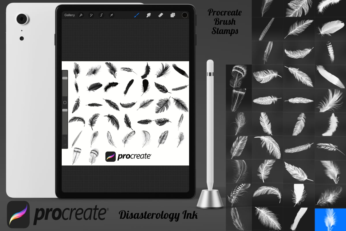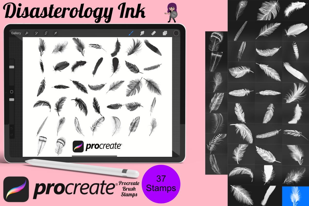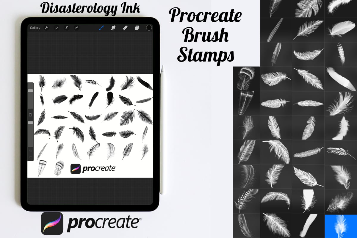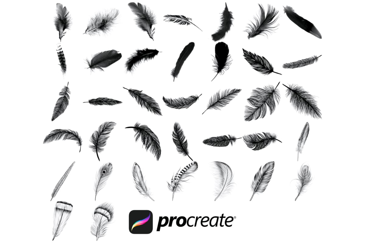 Feathers Set 1 Procreate Brush Stamps, 37 Feather Stamps