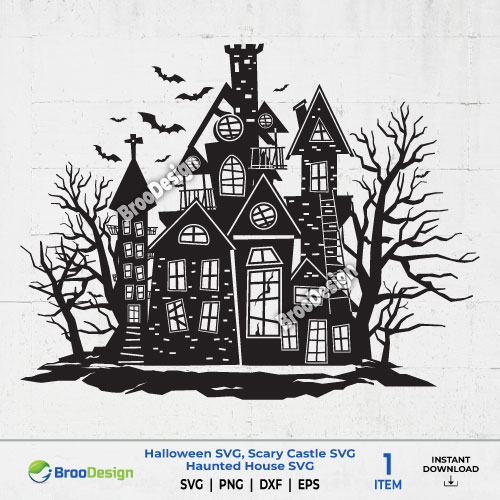 Halloween SVG, Scary Castle SVG, Haunted House SVG (SVG, PNG, DXF, EPS)