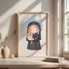 Obtendrás un exclusivo Icono Digital de Santa Faustina Kowalska en un dulce estilo kawaii, perfecto para tus proyectos devocionales y creativos.