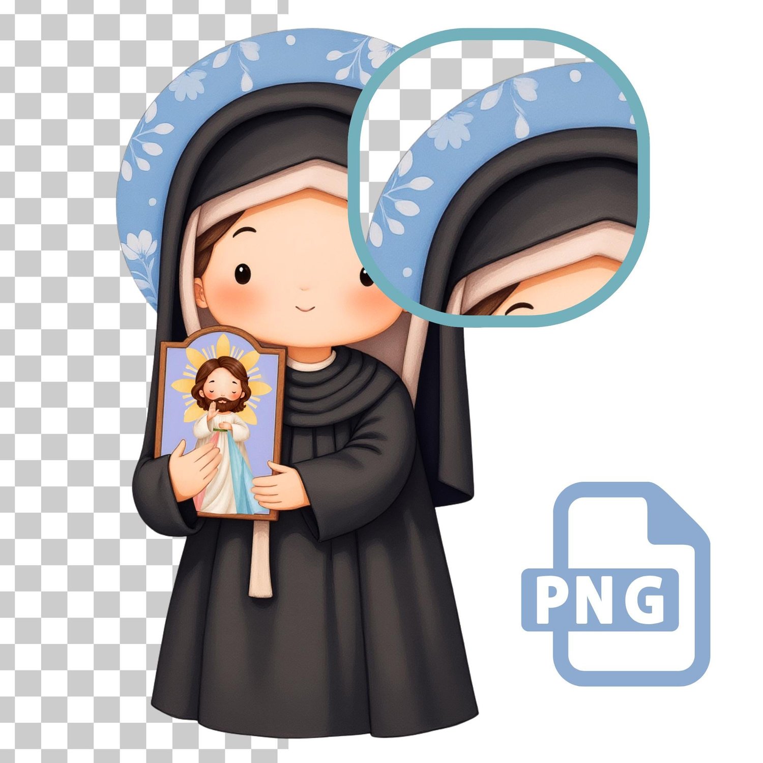 Icono Santa Faustina PNG Sin Fondo Estampa Digital – Clipart Religioso Kawaii