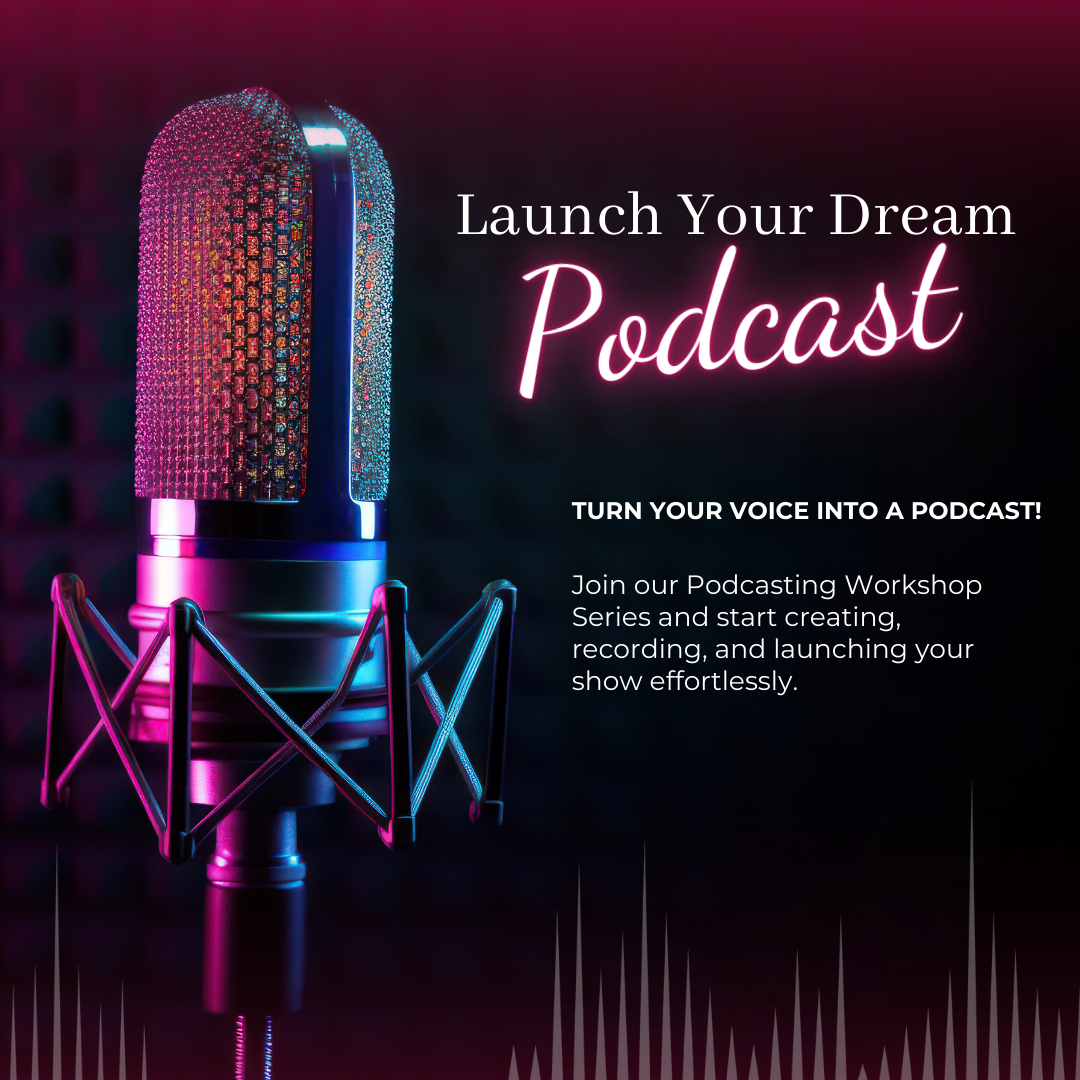 Are you ready to express your ideas, strengthen your personal brand, and connect authentically with your audience? Our Podcasting Workshop Series is meticulously designed to equip you with the essential tools and insights necessary to start, grow, and sustain your own podcast. Whether you’re just starting or have been thinking about podcasting for a while, this workshop will guide you step-by-step in turning your vision into a reality. Join us to learn how to craft compelling content, navigate the technical aspects of podcasting, and establish a strong connection with your listeners.