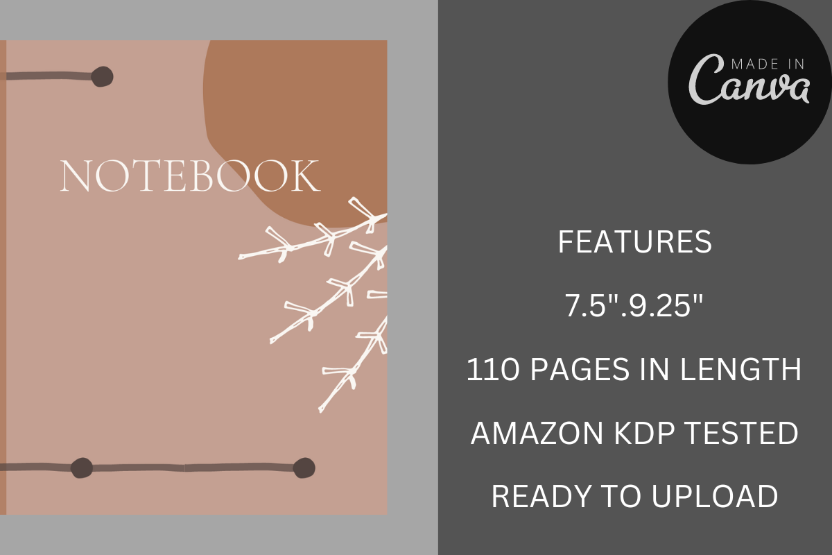 INTERIOR+COVER FOR FLOWER KDP LINED PAPER, LOW CONTENT BOOK FOR KDP READY UPLOAD, FLOWER KDP JOURNAL PAPER, FLOWER JOURNAL NOTEBOOK MOCKUPS, KDP CANVA NOTE