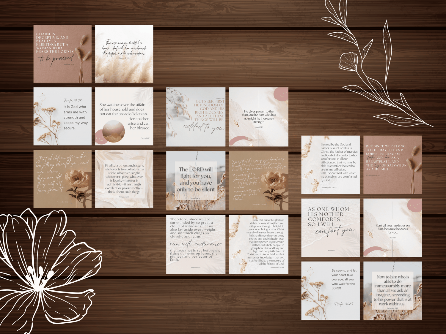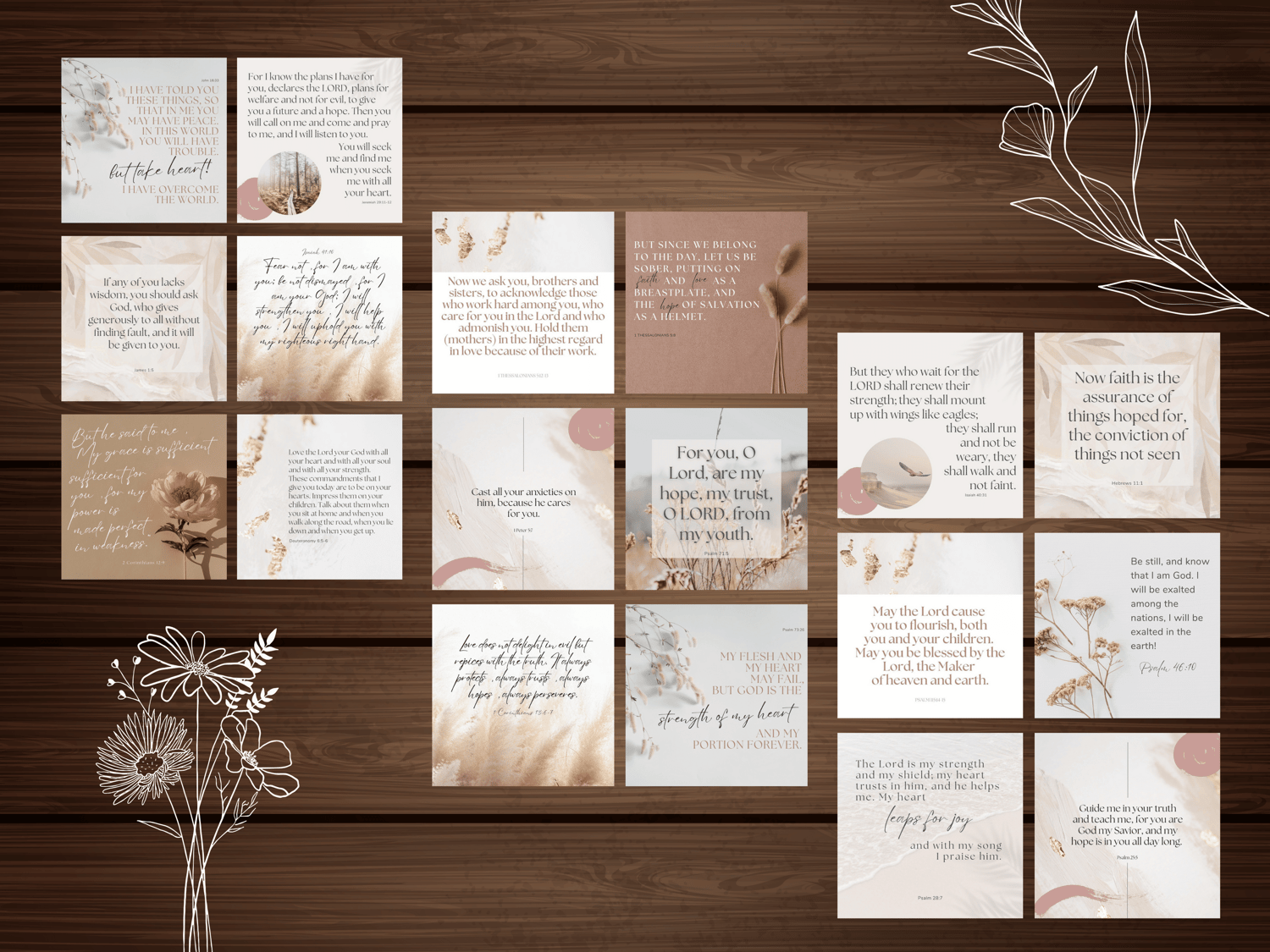 Experience the joy and power of scripture with these 36 Boho Beige Printable Scripture Cards for Mothers! With this instant download, you can easily and quickly give the gift of encouragement and strength through the Word of God. Perfect for mothers, these scripture cards are the ideal way to show your special mom how much you care.