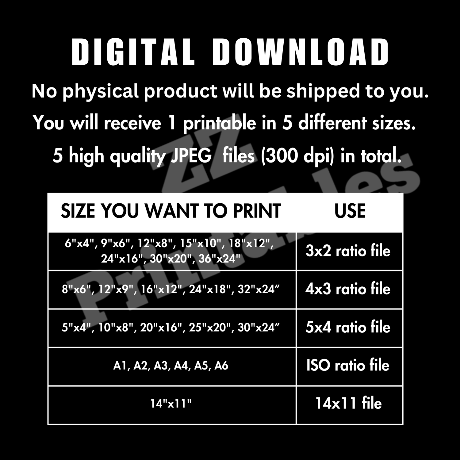 - Size #3: 5x4 ratio (5"x4", 10"x8", 20"x16", 25"x20", 30"x24”)