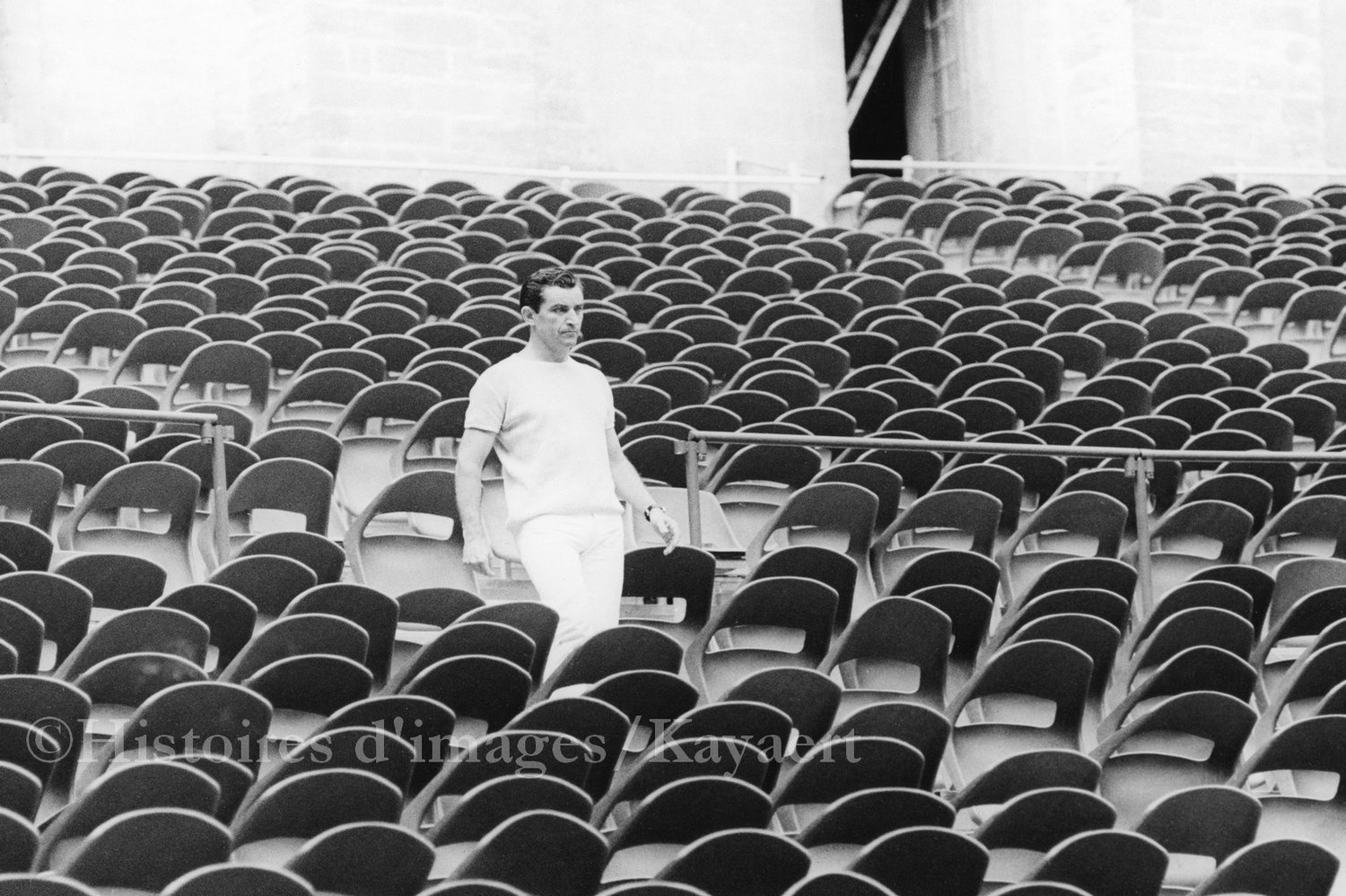 A timeless black and white portrait of the legendary choreographer Maurice Béjart, taken by Belgian photographer Robert Kayaert during the Avignon Festival in 1969.