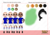 three different skin tones, three eye colours and five hair colours)