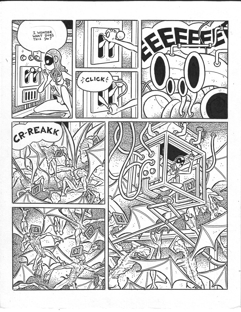 (NOTE: Many pages from Chrome Fetus Studios are composites of different drawings on multiple bits of paper and flotsam - sometimes crudely cobbled together with glue or tape. You may also find pencil marks, scribbled notes and graphite thumbprints. Consider these features as a means of certifying the genuineness of the artwork!)