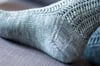 Twisted rib and an old favourite simple lace pattern are combined to create an effortlessly stylish, feminine pair of socks. Knit from the top down with a heel flap, these socks come in three sizes, and use more stitches in the sole than the instep to allow for the extra ease of lace knitting.