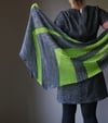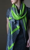 This generously sized triangle shawl combines some of my favorite infatuations: thin stripes, funky lace, and crazily contrasting blocks of color.