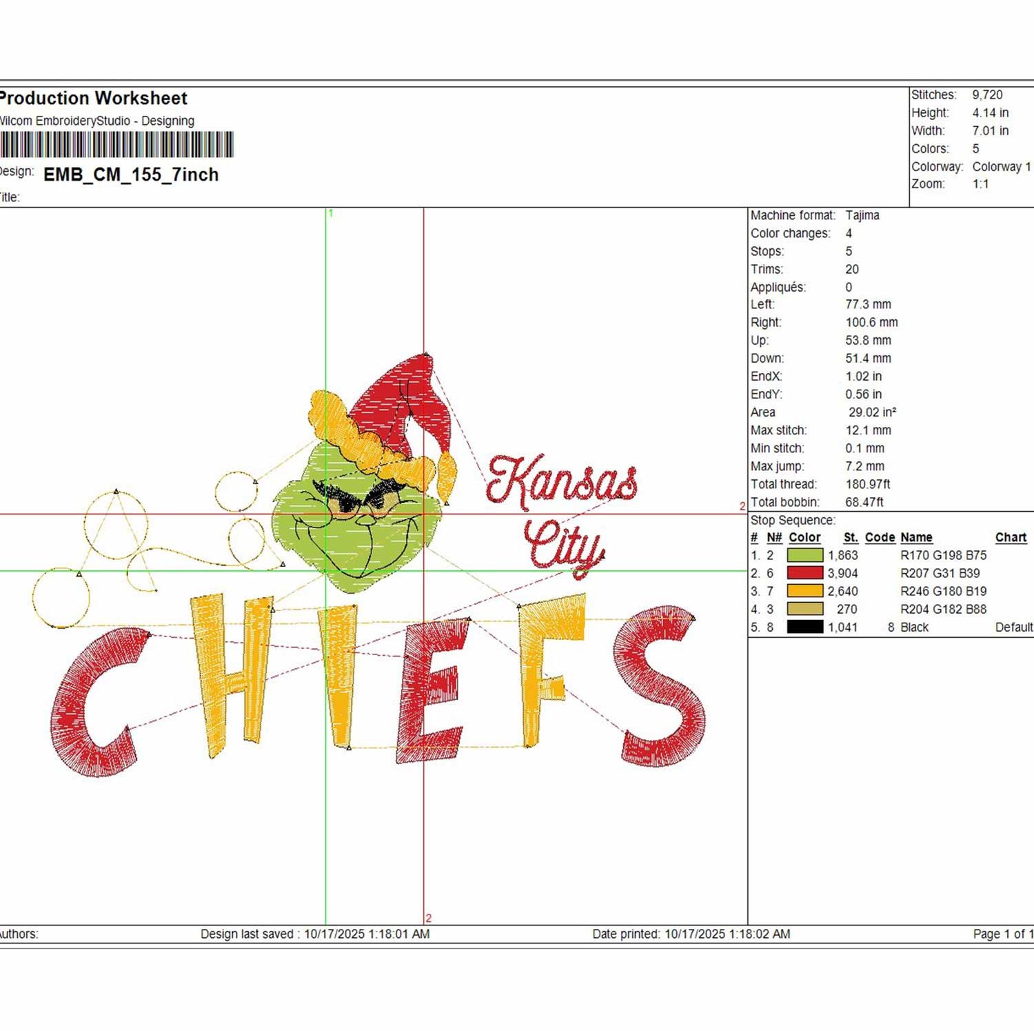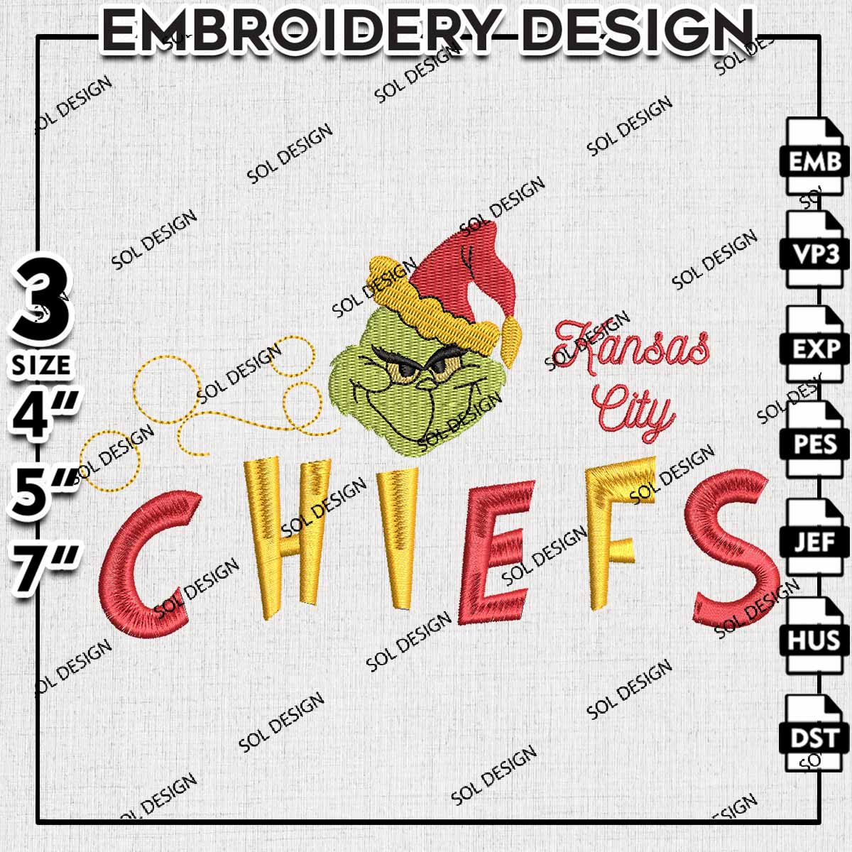 #ChristmasGrinch #KansasCityChiefs #NFLEmbroidery #GrinchEmbroidery #ChiefsLogo #FootballEmbroidery #MerryChristmasDesign #MachineEmbroidery #DigitalDownload #HolidayCrafts