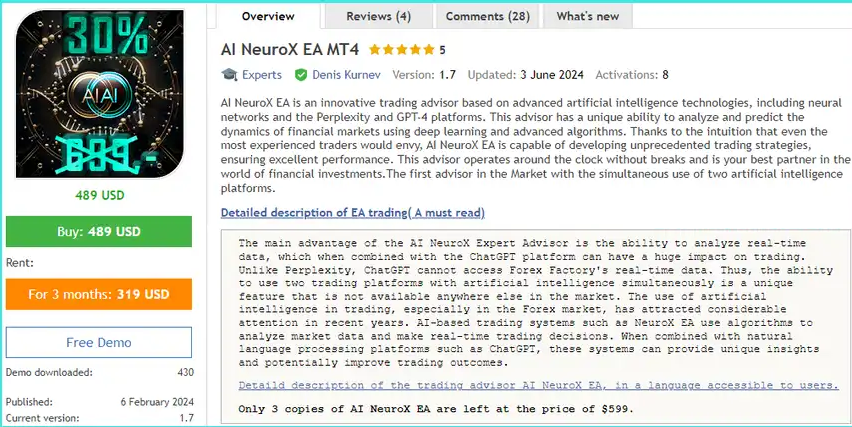 AI NeuroX EA is an advanced tool for MetaTrader 4 that helps users explore adaptive neural logic strategies in a simulated environment. It is intended for educational and research use only. This software does not execute live trades, provide financial advice, or guarantee any trading outcomes.