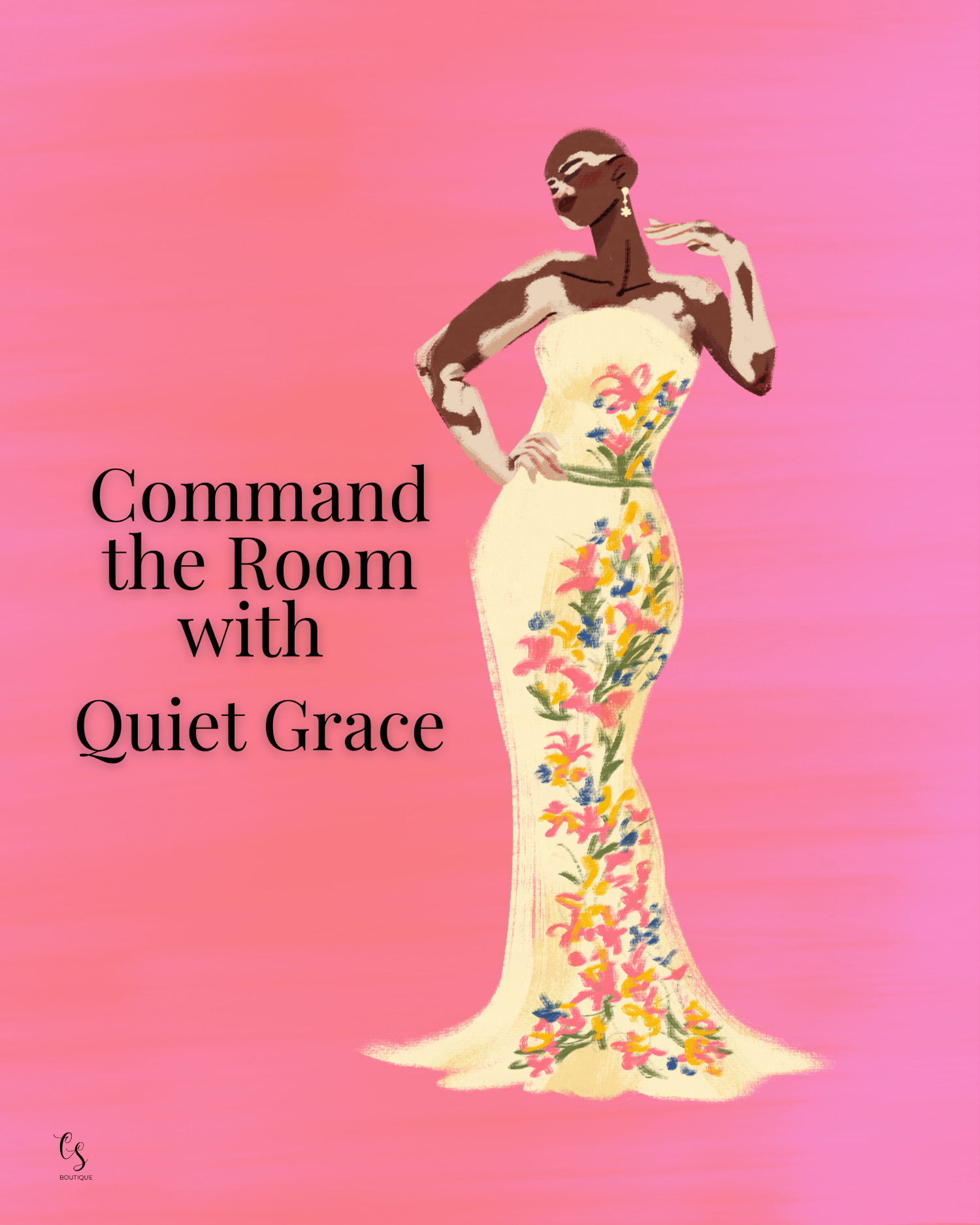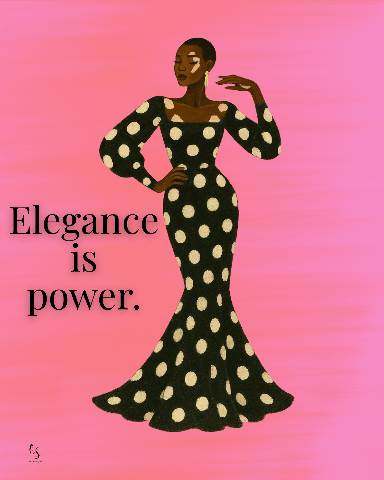 From floral gowns and fierce polka dots to sleek minimalism, each illustration tells a story of poise and personal power—paired with powerful quotes like: