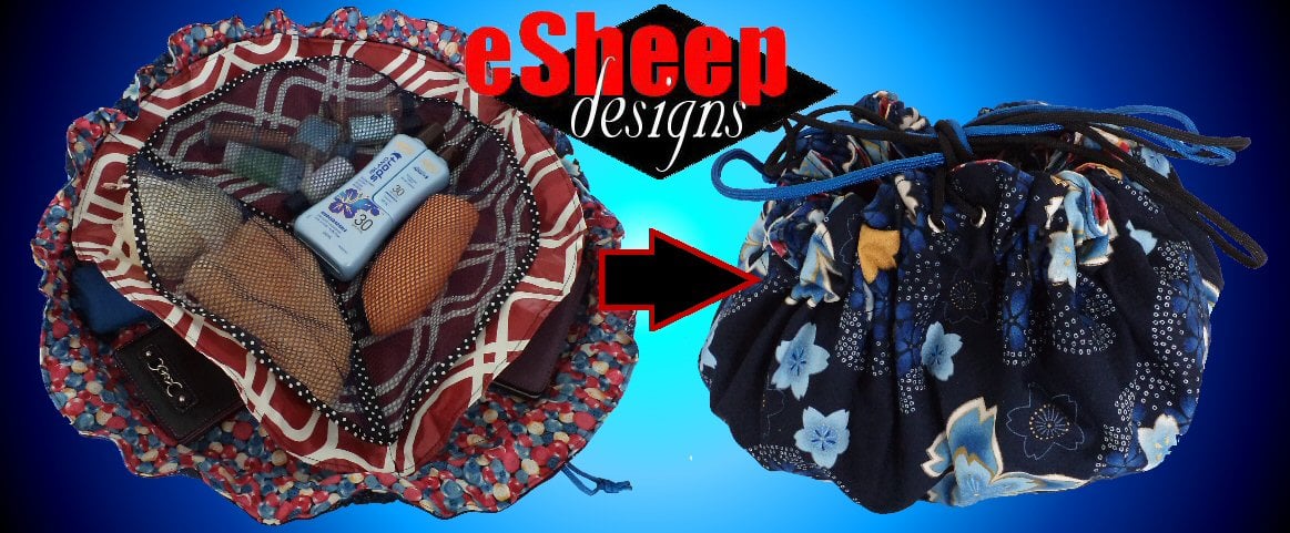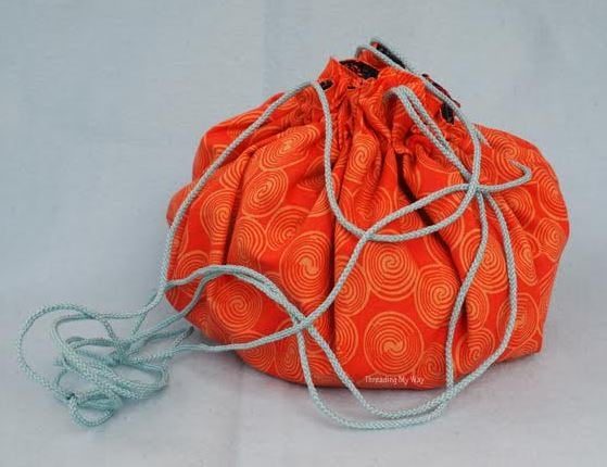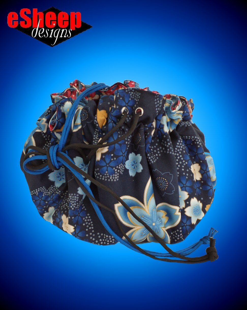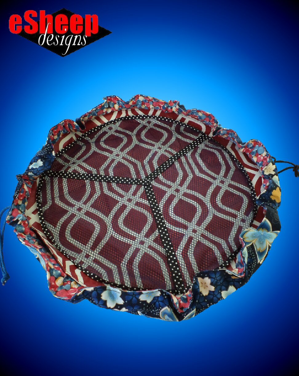 FINISHED MEASUREMENTS: The finished size (of the one shown; you are free to make it whatever size you want) when opened up fully is a 24" or 61cm wide circle. When cinched up, it is approximately 11" x 9" (52cm x 48cm) at the base (depending on contents, if any).