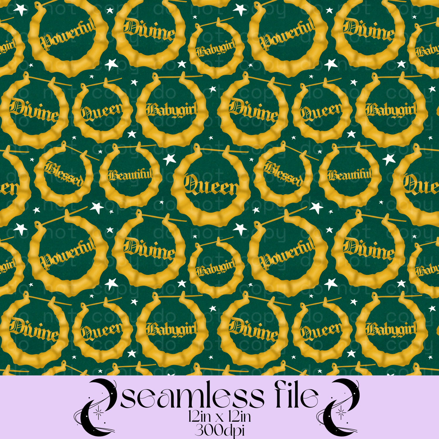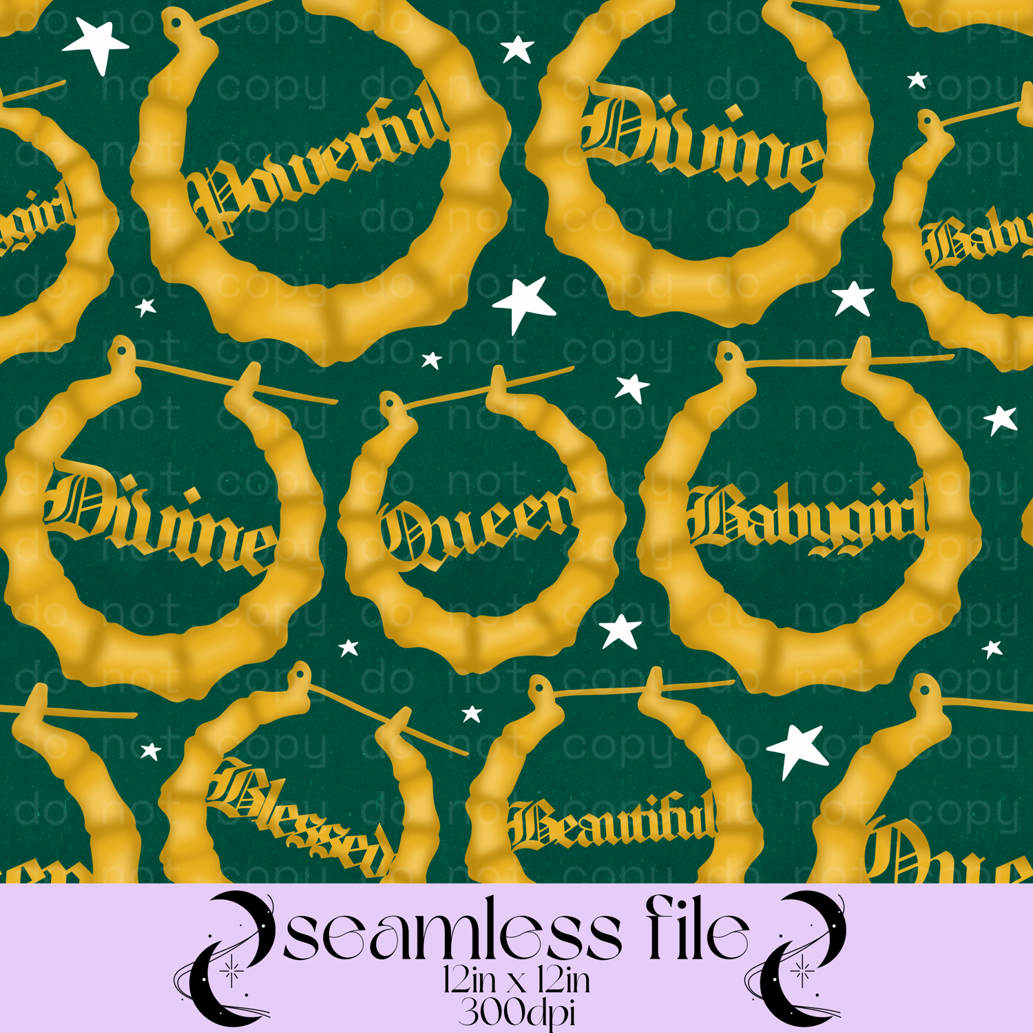 Bamboo Earrings Seamless Pattern (Midnight Green)