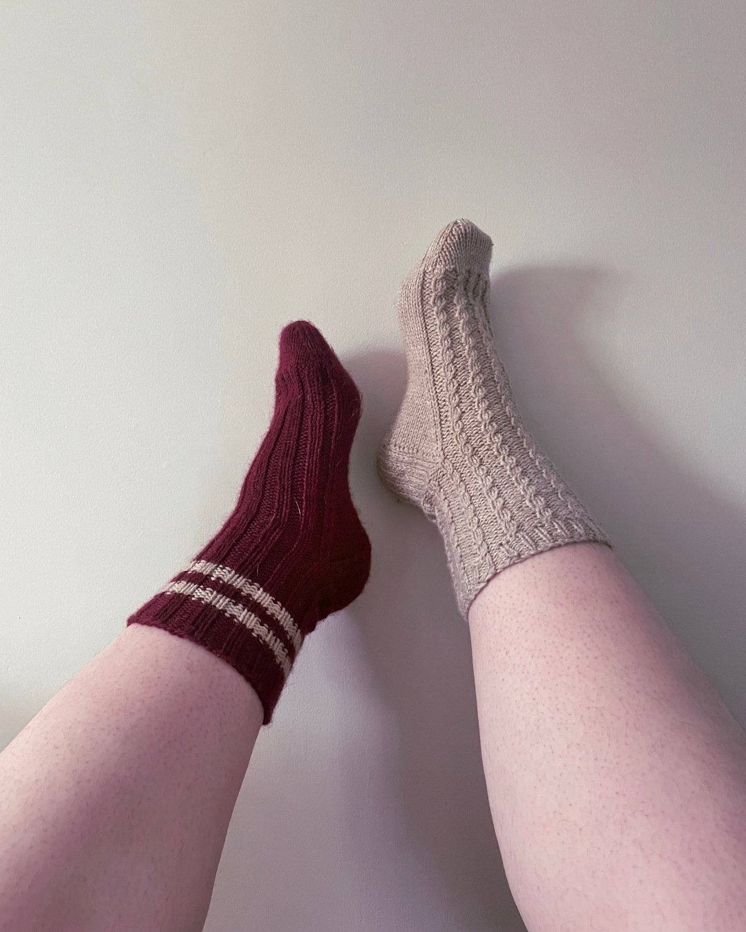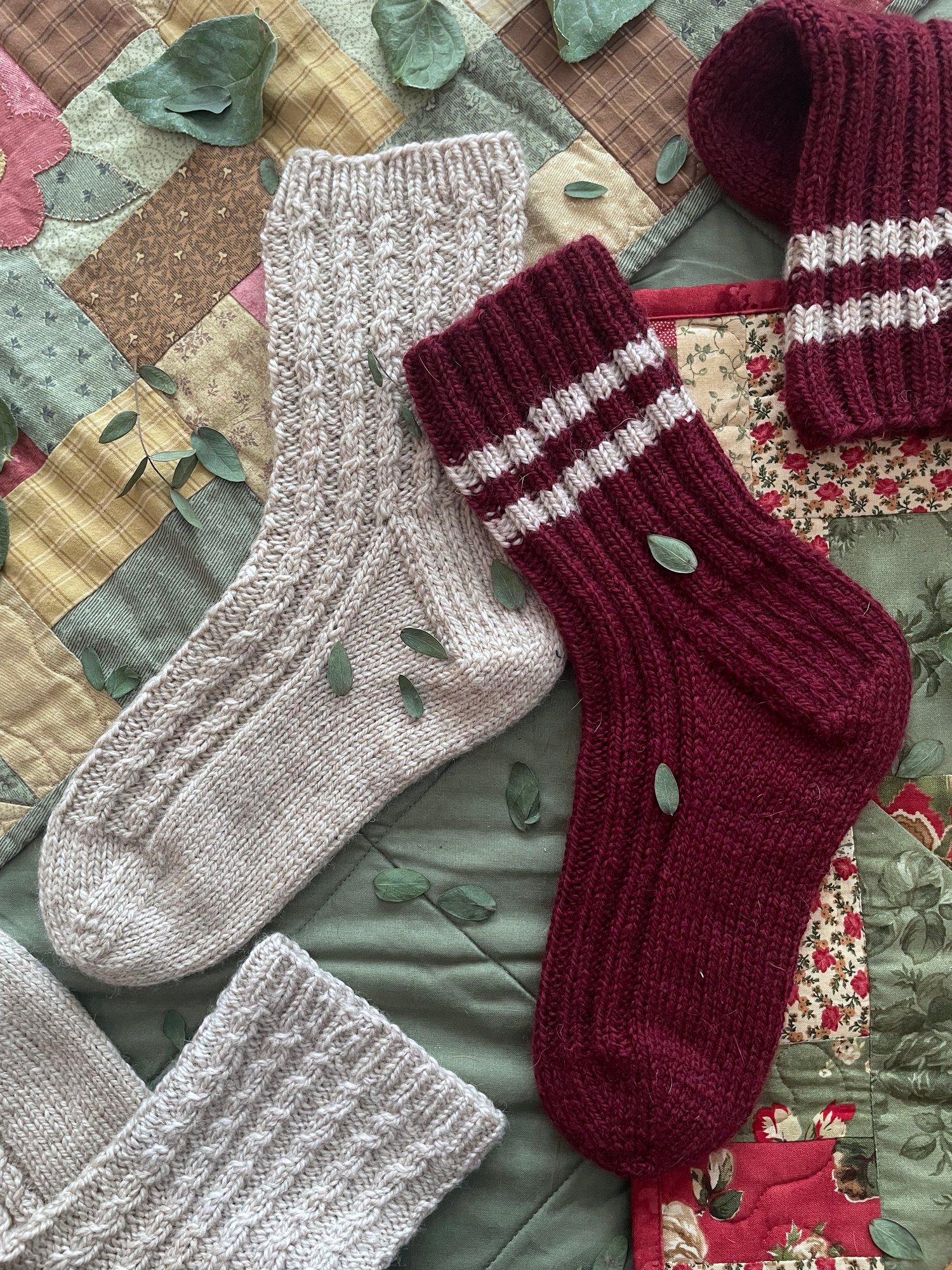 Every Christmas, my late grandmother Patricia – or Pat, as she was affectionately known – would knit everyone in the family a pair of winter-worthy socks. Pattern and color always varied from person to person, year after year. She used socks as her love language and it’s my hope that you use these workhorse socks for gifts for yourself and your loved ones whatever the time of year.