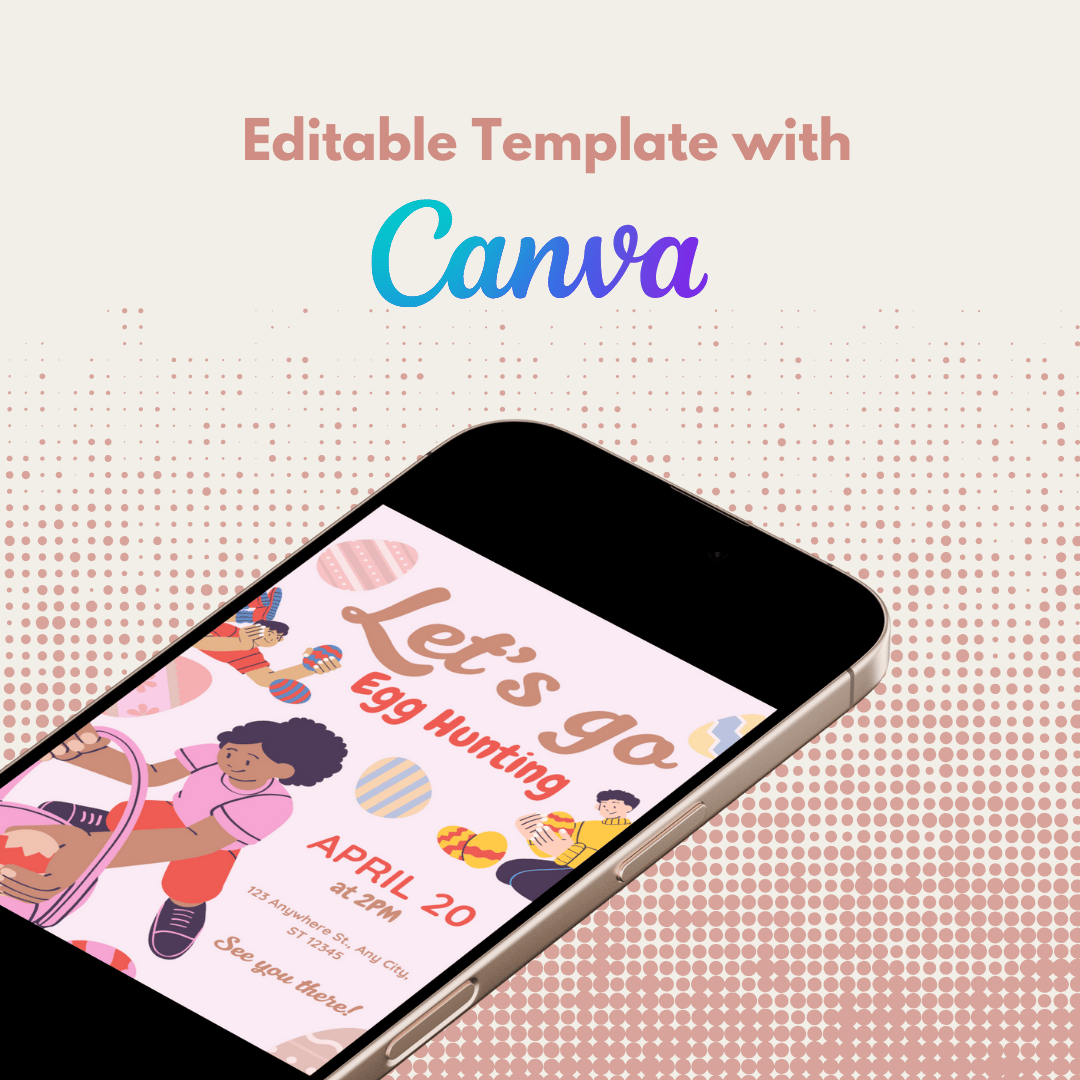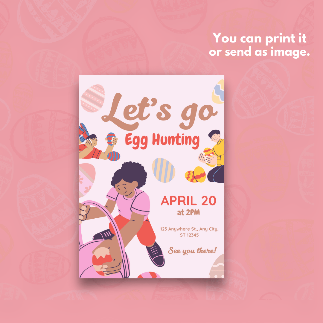 This Cheerful Colorful Egg Hunting Easter Event Invitation Card Canva Template Design is the perfect way to invite your loved ones to a special Easter celebration. Designed in a simple watercolor style, this editable and printable invitation captures the spirit of April, rebirth, and the warmth of being surrounded by