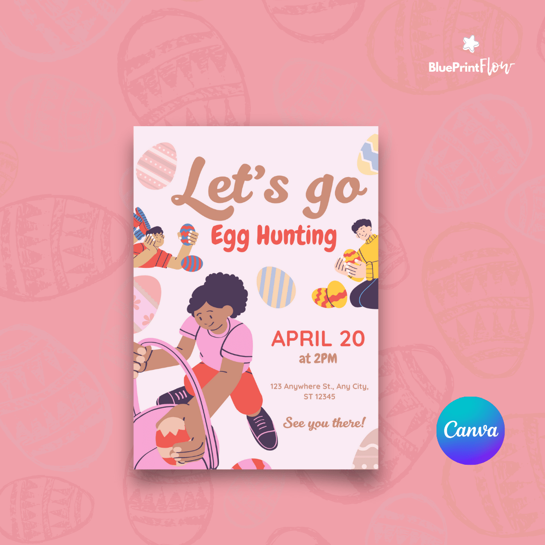 Cheerful Colorful Egg Hunting Easter Event Invitation Card Canva Template Design