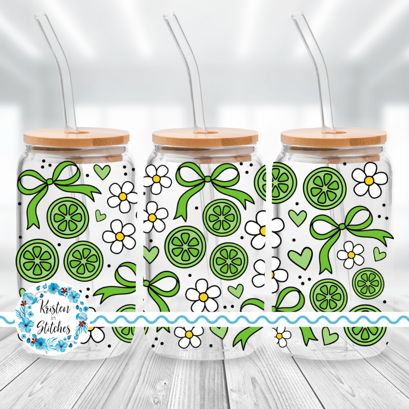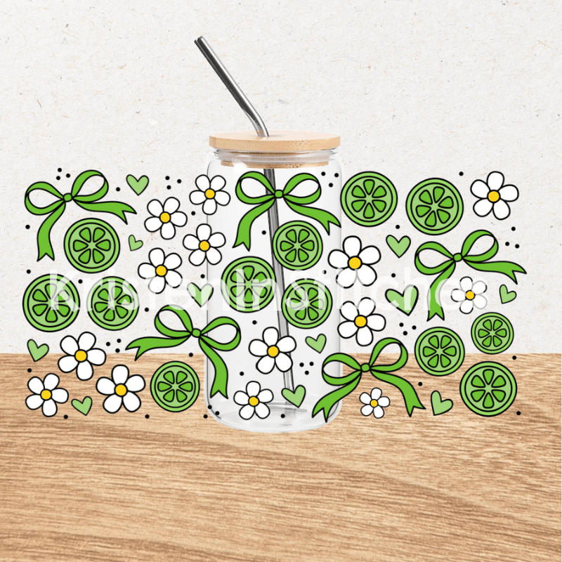 Coquette Fruit and Flowers Glass Can Wrap Transparent PNG, Bows and Limes