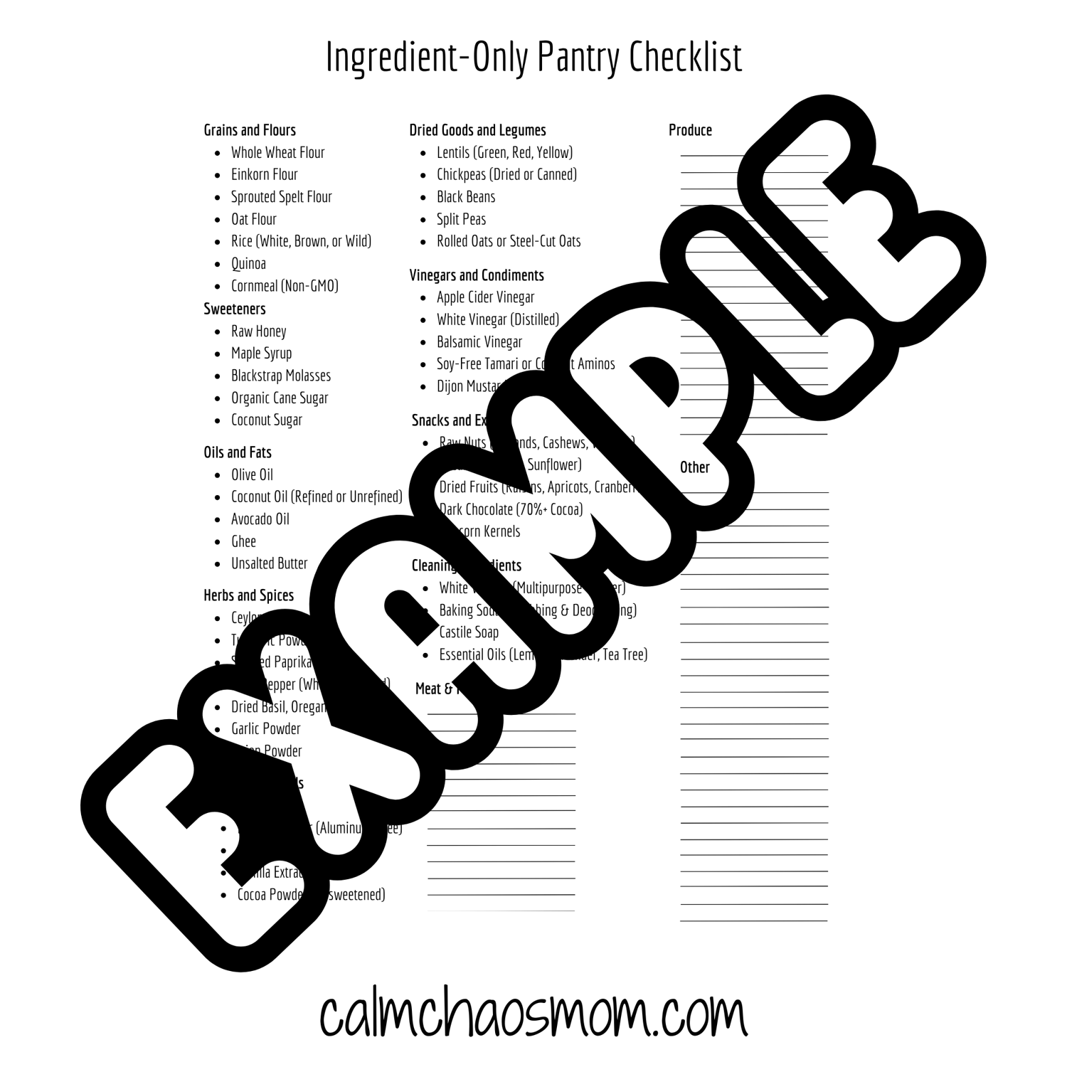 Ingredient-Only Pantry Checklist | Printable PDF for Wholesome Living | Planner Page 11.5"x8" PDF
